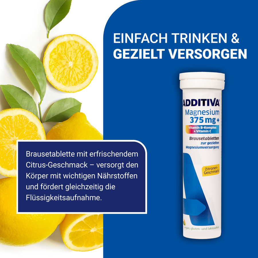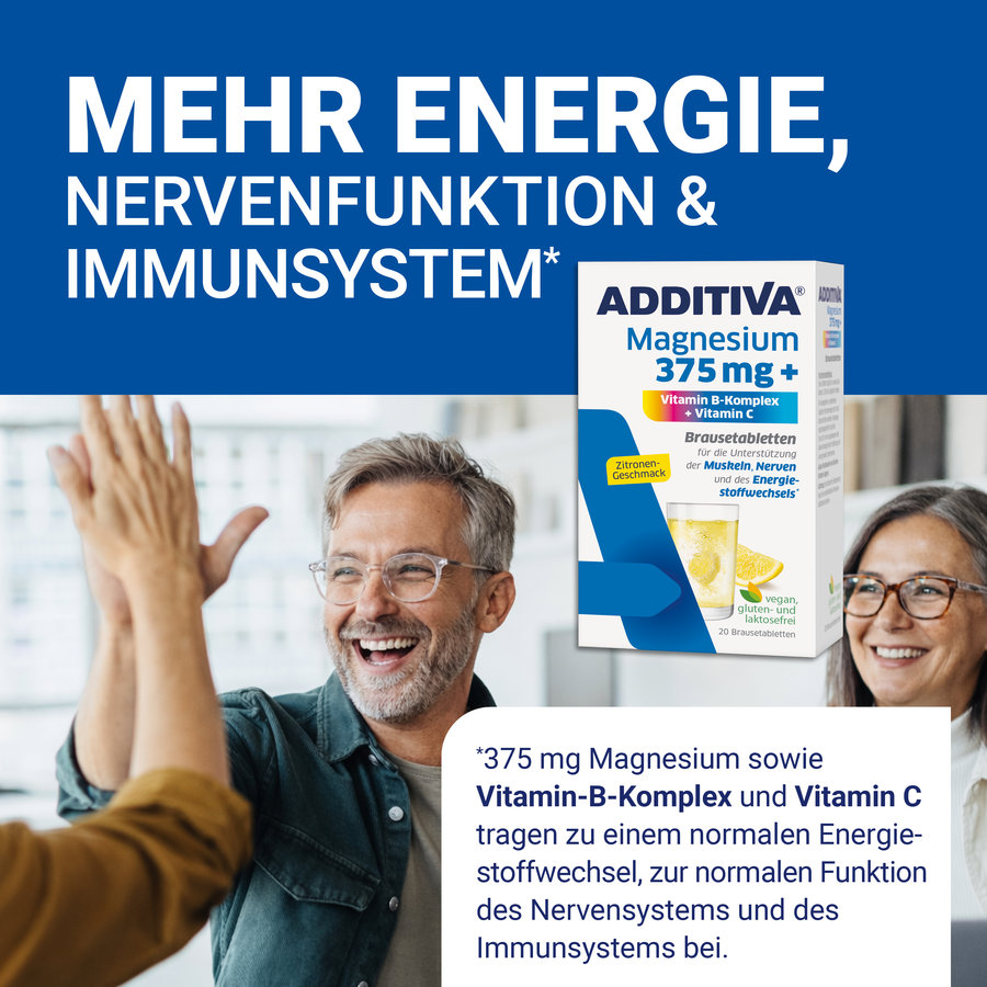 Wenn Du im Alltag viel leistest – körperlich oder geistig – ist eine gezielte Nährstoffversorgung besonders wichtig. Die ADDITIVA Magnesium 375 mg + Vitamin B-Komplex + Vitamin C Brausetablette wurde genau dafür entwickelt: für alle, die Konzentration und Energie unterstützen möchten.