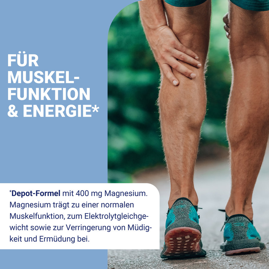 Magnesium unterstützt zahlreiche Funktionen im Körper – von Muskeln über Nerven bis hin zum Energiestoffwechsel. Mit 400 mg Magnesium pro Tablette integrierst Du diesen wichtigen Mineralstoff einfach in Deinen Alltag.
