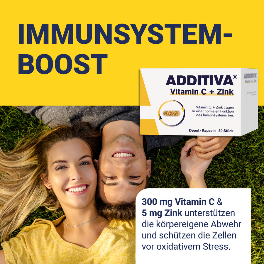 Dein Immunsystem ist täglich gefordert – ob im hektischen Berufsalltag, bei Wetterumschwüngen oder in stressigen Lebensphasen. Ein starkes Immunsystem ist Deine beste Verteidigung – etwa wenn alle um Dich herum erkältet sind. Die Immunpräparate von ADDITIVA bieten Dir gezielte Unterstützung mit bewährten Mikronährstoffen: Vitamin C, Zink und Selen.